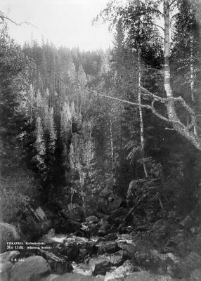 Maat täällä ovat mäkiset, ja kaukaisuudessa siintää yhä korkeampia kukkuloita. Se joki tai virta tai oja - miksi hänet tahtoo sanoa - jossa Korkeakoski on, kulkee pitkin matkaa sangen syvän ja jyrkkä-äyräisen haudan pohjaa.