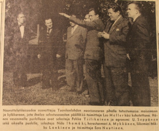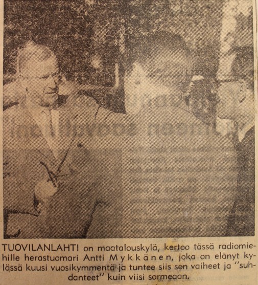 Jos asiaa katsellaan nykyaikaisesti, niin muodostaa tämä paikkakunta sellaisen kokonaisuuden, jolla on sekä taloudellisen että muunkin toiminnan puolesta oma erikoisleimansa. Siitä arvatenkin johtui, että Suomen Yleisradio on valinnut perusteellisen harkinnan jälkeen Tuovilanlahden sellaiseksi maamme kyläkunnaksi, jonka tullaan kuukauden kuluessa kuulemaan Yleisradiossa esitettävässä radioselostuksessa.