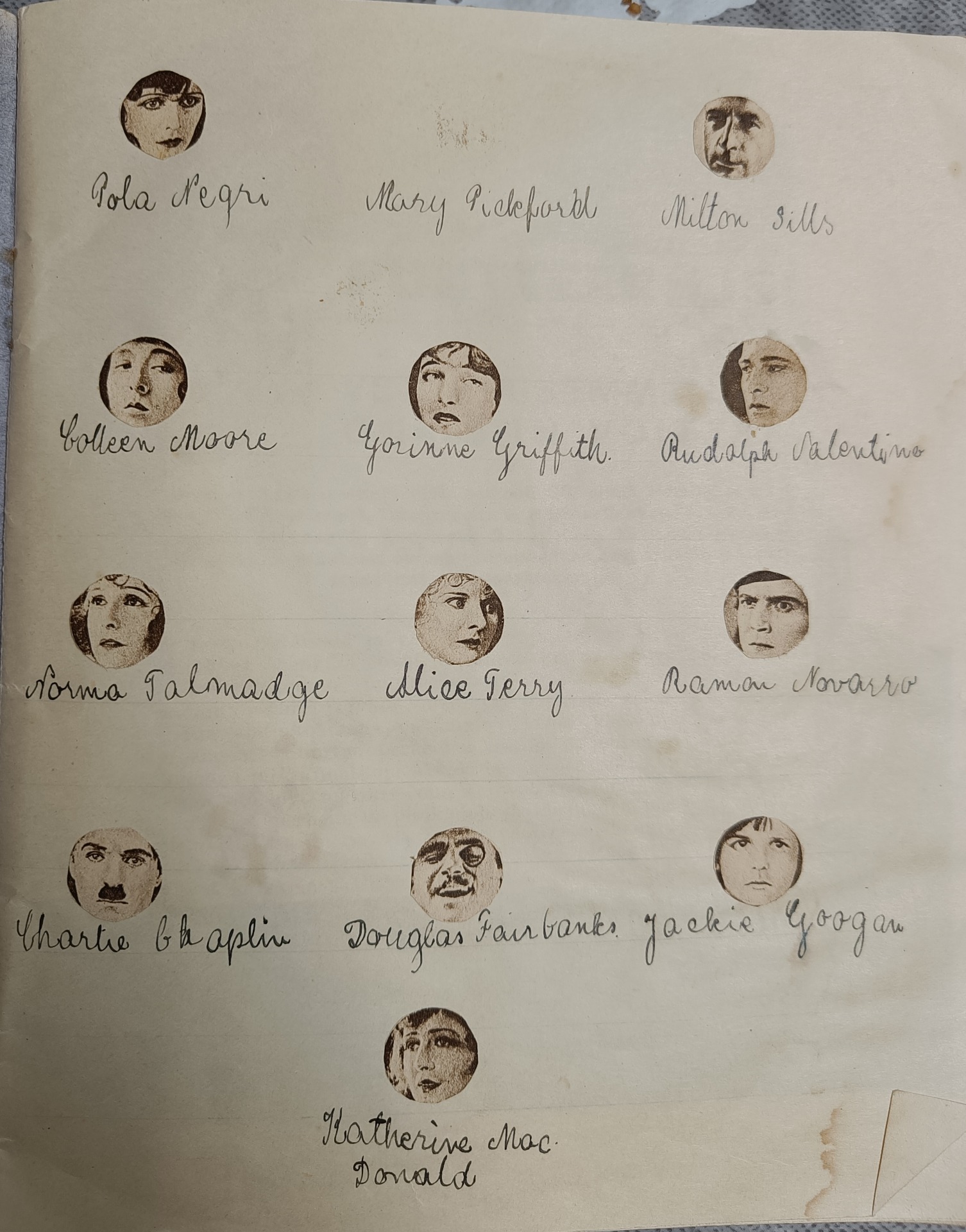 Erään Maaninkalaisen nuoren tytön lehtileikekirja Filminäyttelijöistä 1920-luvulta